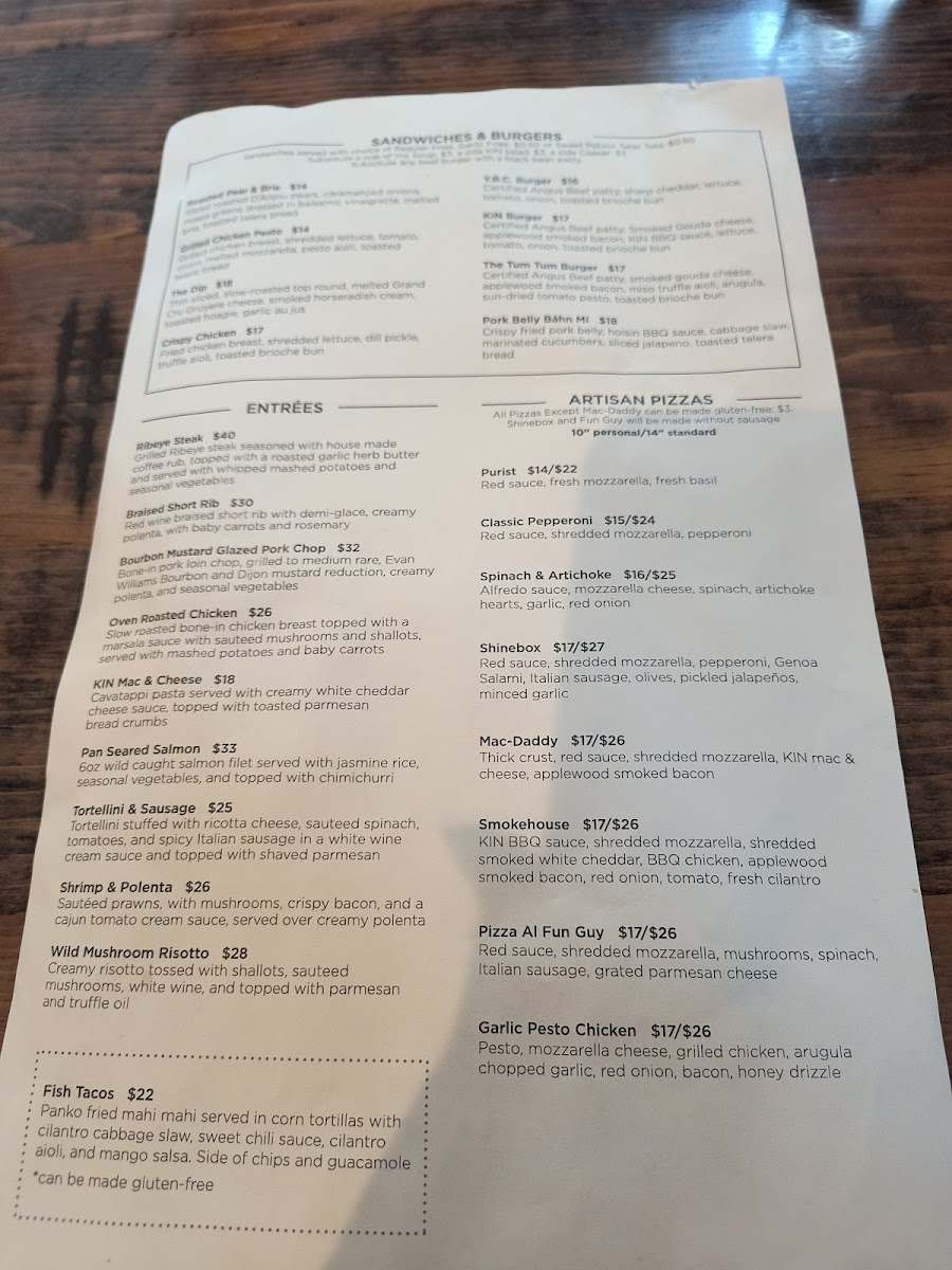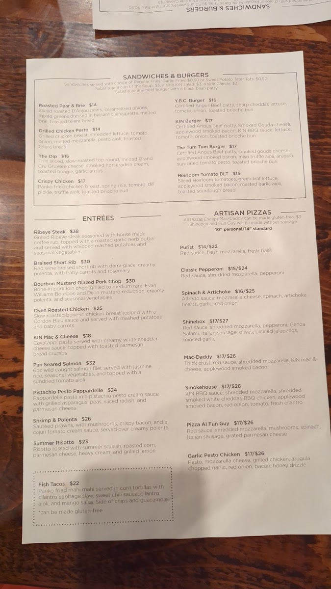 Introducing KIN Windsor, a charming American restaurant nestled in the heart of Windsor, CA. This eatery offers a menu that masterfully blends classic flavors with artisanal craftsmanship. Start your meal with the Soup of the Day, tailored from the freshest seasonal ingredients, before indulging in hearty entrées like the Grilled Ribeye Steak, seasoned with a signature coffee rub, and finished with roasted garlic herb butter. For pizza lovers, KIN’s selection dazzles, featuring standout options like the Bacon Mac n Cheese Pizza, which is a crowd favorite for its rich, creamy appeal.